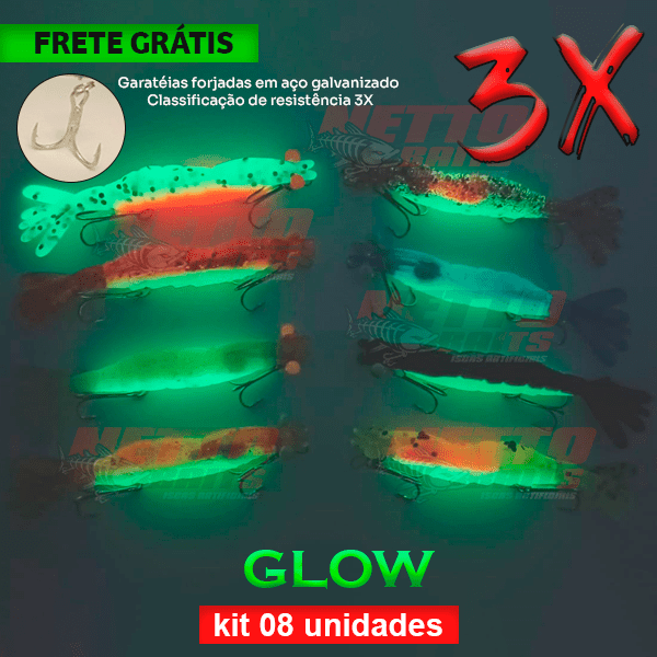 O Camarão Plug Glow3x – Sua característica fosforescente garante uma experiência de pesca incomparável, seja sob o sol escaldante do dia ou sob o brilho da lanterna. Classificação de resistência 3X.